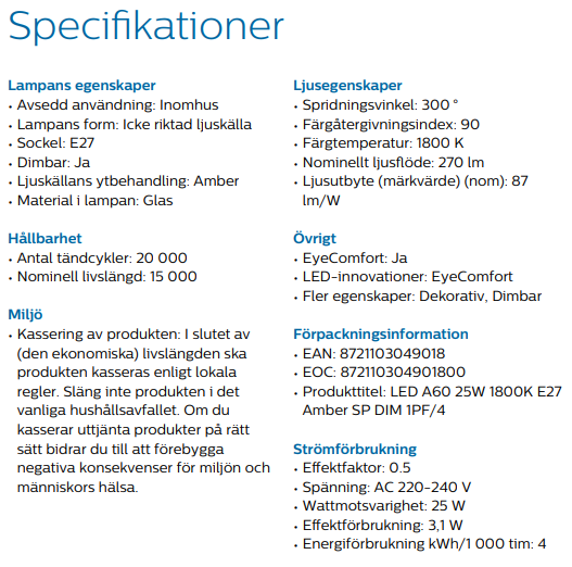Philips LED A60 25W 1800K E27