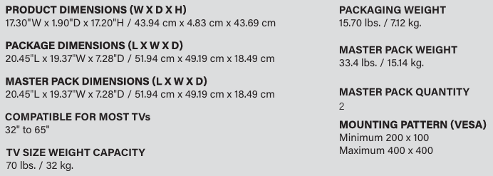 • Passar TV-apparater 32"-65"